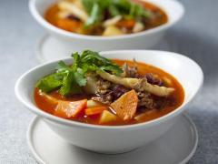 ロシアと中国の国境あたりで食べられている粉もの麺料理デス。手でこねこねした麺を入れる。粉物は本当に気持ちも、体も温まります。