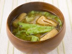 生のレタスに、熱々みそ汁をかけるだけ。シャッキリ感が自慢のみそ汁です。
