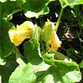 久方ぶりに祖母の家を訪ねた。今年で93歳。庭先の隅っこにきれいな花劣が咲いていた。思わずパチッ。天気のいい日だったので、黄色の花がまぶしい。何の花なんだろと葉をしげしげ見たが、カボチャかズッキーニのような気はするがソレらしき野菜は見当たらない。 10日くらいしてから、電話で尋ねると、「えっ?何のこと?そんな花あったっけ」受話器をおいて見に行った。なんと、食べたカボチャの種をそこにうめたら、花が咲いた劣と、なにより本人が驚いていた。
