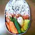(ペコッ)秊と蓋をしめるのである。ちなみに写真は鶏の唐揚げ・人参、オクラ、南瓜、竹輪の煮物である。