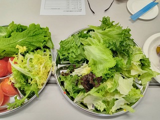 沢山の種類のレタスの食べ比べ。味をつけないでまずは、それぞれの葉の味。