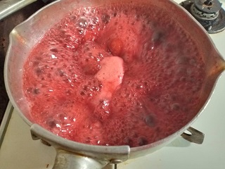 小粒のいちごが1パック299円。2パック買って、ソースとジャムの間くらいのとろみ感で仕上げました。