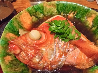 夕飯に金目鯛の煮付け。いつも作る側なので、煮たばかりの熱々のお魚の煮付けは最高に嬉しく、天下一品のご馳走です。