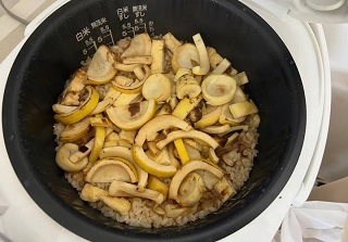 ご自分ちの裏山で採れたもので、生でも食べられることでしたが、軽く湯がいて、炊きました。