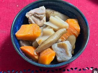 我が家の定番おかず、『がめ煮』(=筑前煮)。休日、たっぷり作りました。妻と2人暮しなので、3日つづけて同じおかずを食べると思います。