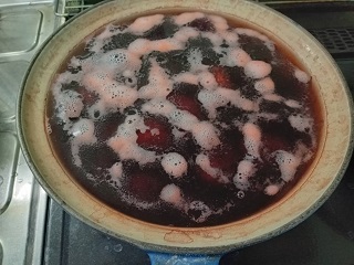 このあと水洗いします。やさしい火加減で、数回ゆでこぼしてから本格的に砂糖で煮ていきます。今日はゆでこぼしまでしておしまい。ながらですなぁ。。。