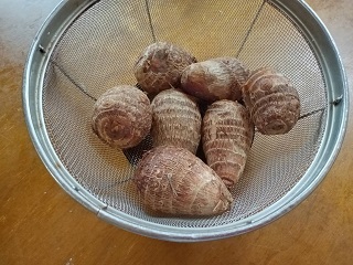 ちょっとがかなりになるのって、すごく嬉しい。朝、里芋をゴシゴシ洗って、ザルにあげていくだけ。