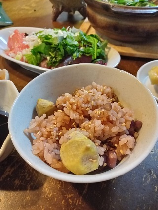 今月もマメに働けますように。まだ、栗があったので、栗入りのお赤飯。