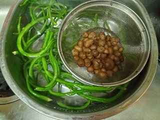八百屋さんで、ささげとムカゴ。ゆっくりフライパンで、蓋して焼いて、好みの塩であてに。