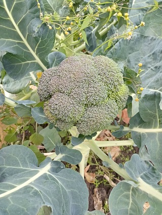 仕事でブロッコリー畑におります。ここのところ、グット寒くなりました。花蕾の部分が寒いと少し、紫がかってくるそうです。