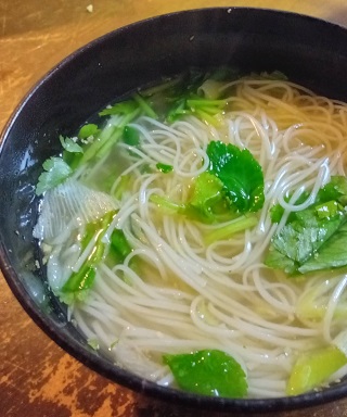 今夜は鯛のでっかい頭が売っていたので、だしをとり、葱と三つ葉だけのにゅうめん。