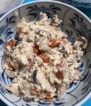 干し柿としめじの白和えをつくりました。美味しく出来ました。最近、さつまいも、かぼちゃなど、甘い感じの一品が食卓にあるのが好きです。