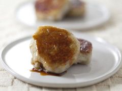 6. 両面こんがり焼け、中まで火が通ったらフライ返しで取り出す。バットや皿などに醤油と砂糖を入れて、餅を両面味をからめて器に盛り付ける。