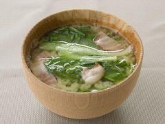 チンゲン菜たっぷり、ベーコンだしのみそ汁。